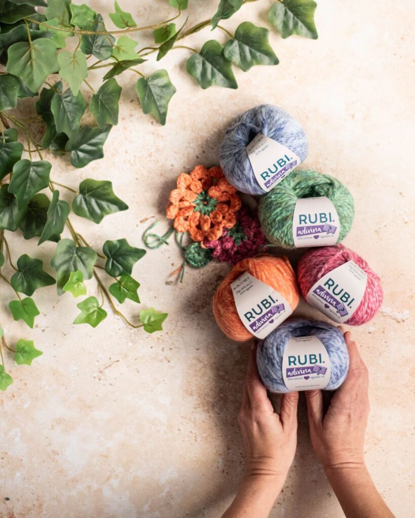 El kit incluye el patrón en PDF y 3 ovillos de Rubí Adivina.