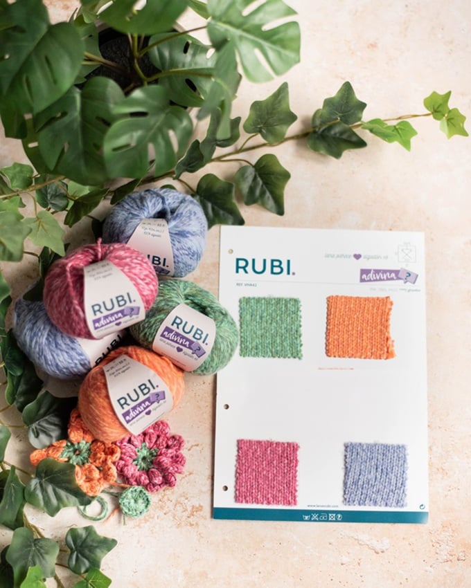 El hilo Rubí Adivina es perfecto para este proyecto: es suave, con aspecto de lana pero en algodón, y tiene la calidez ideal para las estaciones intermedias como primavera u otoño.